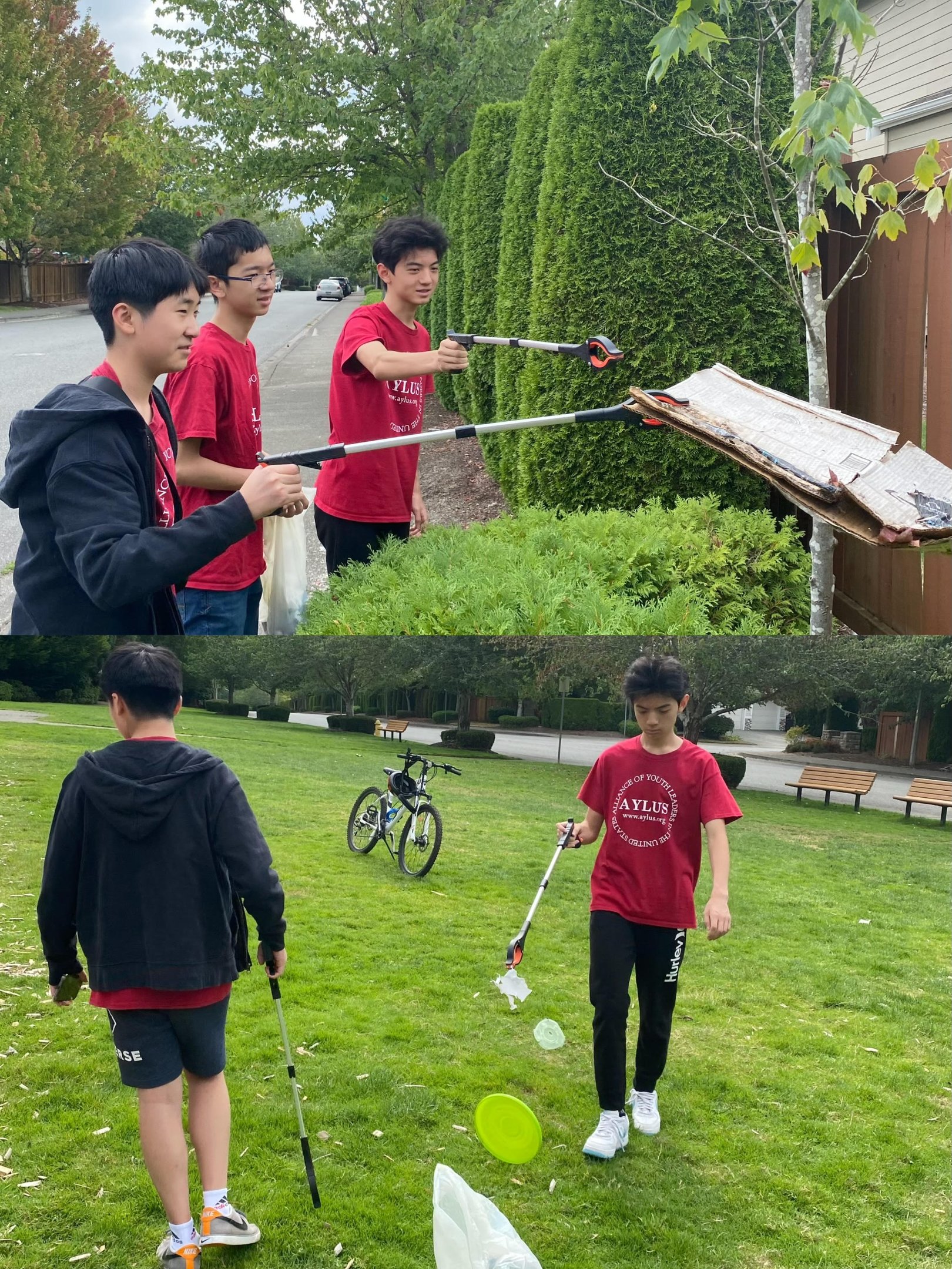 On August 31, 2025, our team organized the third community cleanup event in the Vintage and surrounding neighborhoods of Sammamish. From 1:00 PM to 2:30 PM, branch members Eric Huang, Joey Zhu, and Kevin Chen walked through the neighborhoods, park, and trail—collecting one and a half bags of garbage, sorting recyclables, and properly disposing of waste.