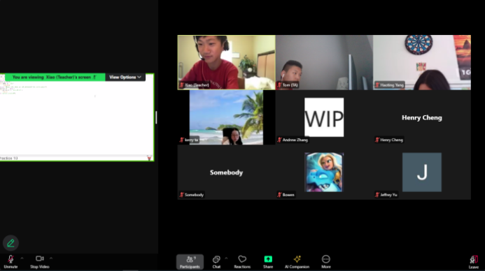 HHWC hosted a five-day Beginner Python Camp from August 11 to August 15, 2025. Led by instructor Xiao Mao and assisted by Zhebin Zhang, Kerry , and Kevin Chen. The camp taught students Python fundamentals, and functioned as a gateway to programming. Class material was built with a special focus on game design to make sessions both memorable and enjoyable. Zoom webinars were hosted daily for a work-week, each two hours long. In addition to the regular lecture, Xiao Mao also dedicated invaluable time to reviewing and assessing student homework, and answered student specific questions.