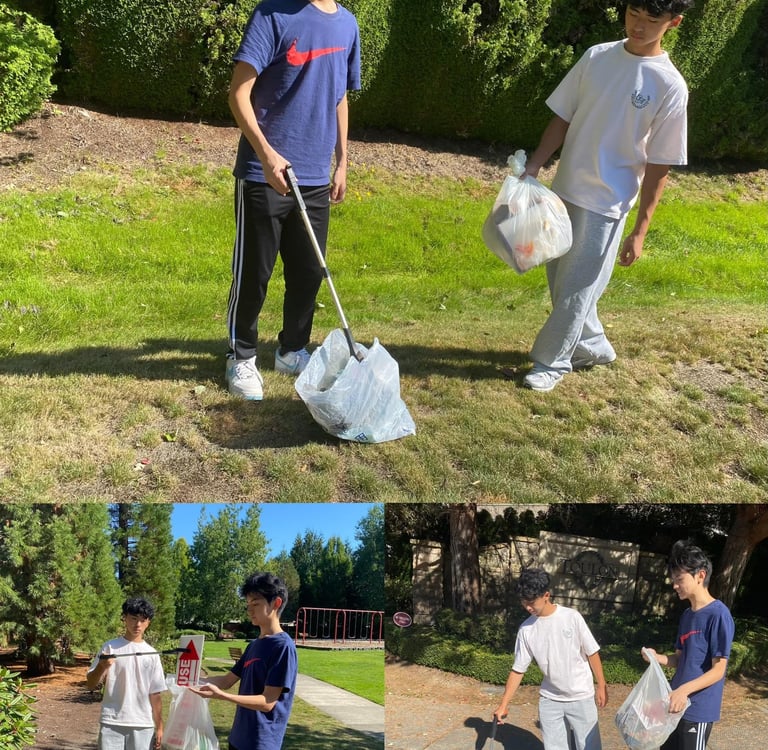 On September 17, 2025, our team organized a community cleanup event in the Renaissance Ridge and surrounding neighborhoods of Sammamish. From 2:00 PM to 3:30 PM, team members Eric Huang and Jerry Yang walked through the neighborhoods, park, and trail—collecting two full bags of garbage, sorting recyclables, and properly disposing of waste.