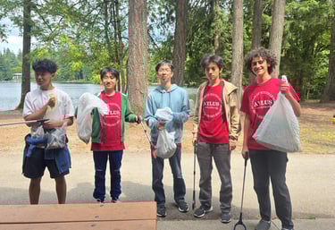 As a continuation of our Community Cleanup Project founded under the Hometown Sammamish Youth Action Group, on May 25, 2025, our team organized the second community cleanup event at Beaver Lake Park in Sammamish. From 1:30 PM to 3:30 PM, team members Eric Huang, Jerry Yang, Elissa Song, Kevin Chen, Joey Zhu, Emily Qi, Tristan Edwar, and Yuhan Song walked around the park, collecting various pieces of trash accumulating to around 6 half-full garbage bags.