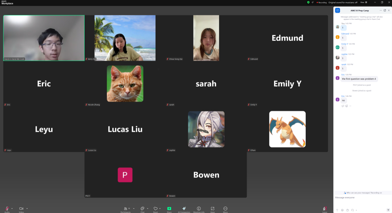 From July 7th to July 11th, Our Math Project Team hosted its week-long summer AMC 10 preparation camp. Teacher Joey and Assistants Kerry, Simon, and Elissa came together to host a virtual Zoom meeting teaching fundamental mathematical concepts to students in order to help them better prepare for future AMC competitions. The camp lasted five days, with each class being two hours long. In addition, Joey also contributed by correcting homework, helping with assignments, and engaging in Q&A support.
