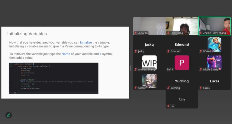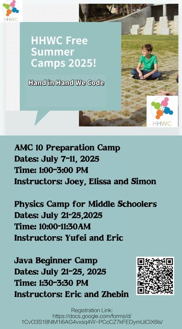 our team successfully hosted a five-day Beginner Java Camp from July 21 to July 25, 2025. Led by teachers Eric Huang, Zhebin Zhang, and Jacky Wenjie Yan, the camp offered students a strong foundation in Java programming. Sessions were started daily at 1:30 PM, the regular lectures lasted for two hours. In addition to the regular lecture, Eric and Zhebin provided homework support, answered student questions, and dedicated time to reviewing and correcting assignments.