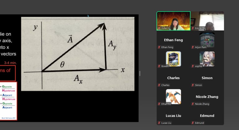 Day 1(July 21): Introduction to Physics and Vectors Students were introduced to the fundamental nature of physics—how it explains the universe—and learned about vectors, including how to represent and manipulate them graphically and mathematically.