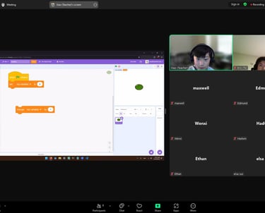 This spring, Eric Huang and his teaching assistant Xiao Mao brought new energy to HHWC by launching a vibrant 5-day Scratch Coding Camp. After the club’s pause in Fall 2023—when the leadership team dissolved—the camp became a major milestone in reviving HHWC. Not only was it the first official event back, but it was also fully student-led, kicking off a fresh chapter of youth-driven creativity and leadership.